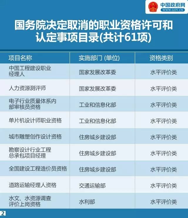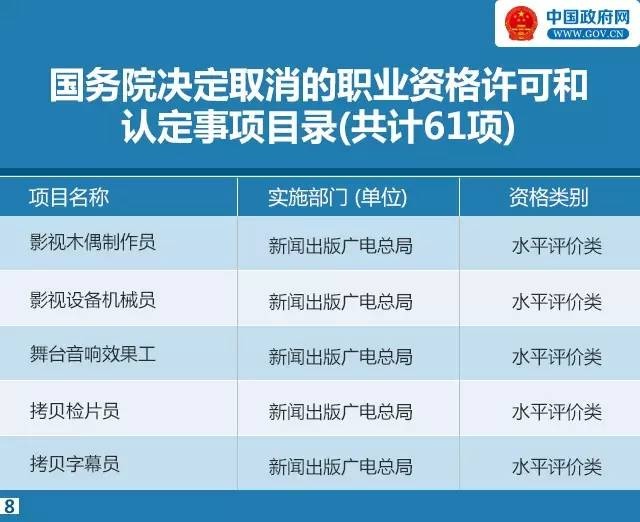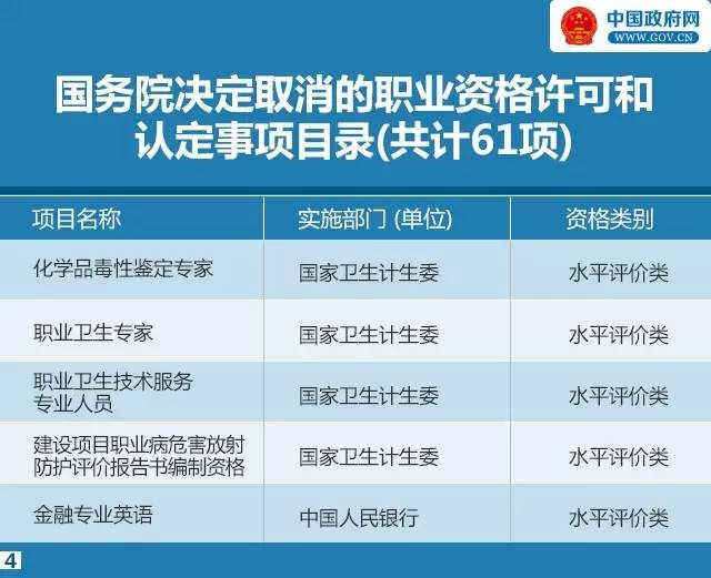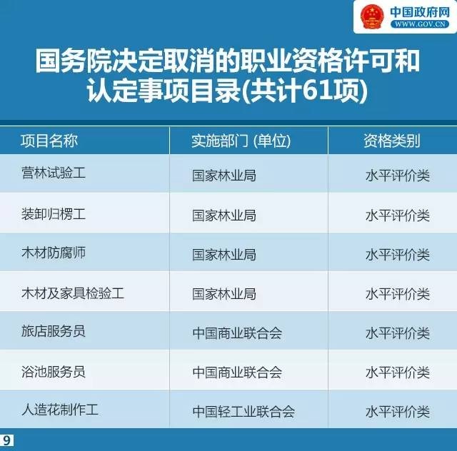 國務院總理李克強6月1日主持召開國務院常務會議。會議指出,取消不必要的職業資格許可和認定事項,是降低制度性交易成本、推進供給側結構性改革的重要舉措,也是為大中專畢業生就業創業和去產能中人員轉崗創造便利條件。 在近兩年已分五批取消272項職業資格許可和認定事項基礎上,會議決定,再取消招標師、物業管理師、市場管理員、插花員等47項職業資格。至此,各部門設置的職業資格總量比本屆政府成立之初已減少50%以上。下一步要在繼續取消職業資格的同時, 公布實施國家職業資格目錄清單,清單外一律不得許可和認定職業資格,清單內除準入類職業資格外一律不得與就業創業掛鉤。