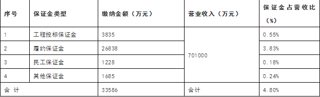 某施工企業在市場經營過程中,繳納各類保證金情況如下表: